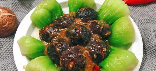 食材:上海青、香菇、生粉、蠔油、生抽、蒜末、食用油、鹽
