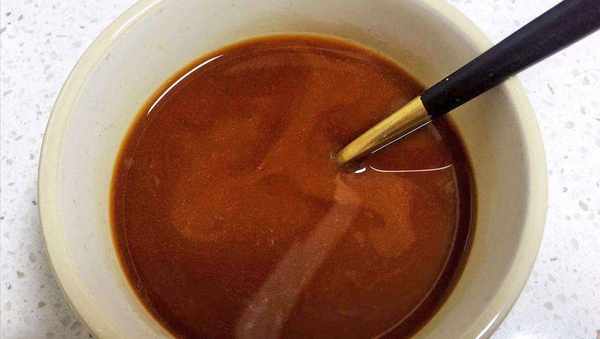 6、趁著蒸丸子的時間來調個醬汁,1勺淀粉,半碗冬瓜水攪拌均勻。