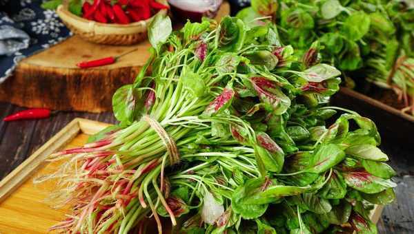 1、新鮮的紅莧菜一把,摘去老葉老梗,用清水多清洗幾遍,然後瀝幹水分後,直接用手掰成小段;