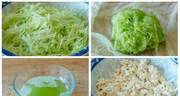 1、小冬瓜1個,去皮去瓤,切小塊兒後擦成絲,裝入碗裡後加一勺鹽,翻拌均勻醃制10分鐘,醃出裡面的水分。10分鐘後冬瓜出瞭很多水,找一塊兒紗佈,把冬瓜絲放進來,包好後用力擠幹裡面的水分。