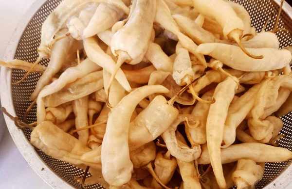 這幾天都是大太陽,婆婆去地裡摘瞭很多辣椒回來,用來曬我們這裡的特色美食——白辣椒,這道美食在我們這邊是這個季節都會曬的一道菜,曬好後的白辣椒想吃的時候就拿些炒,吃起來特別美味。