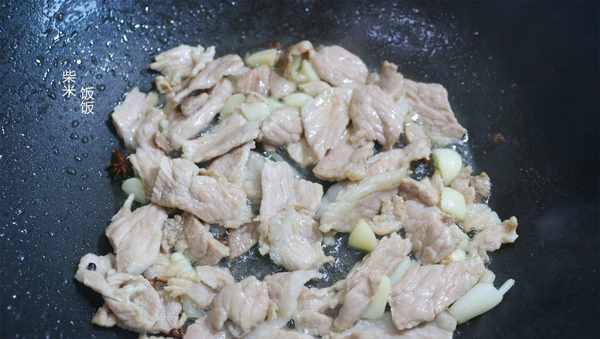 4,倒入肉片,大火翻炒兩分鐘,炒幹表面的水分。