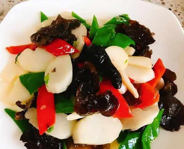 山藥、木耳、胡蘿卜、甜椒、大蔥、食用油、鹽、醋、白糖