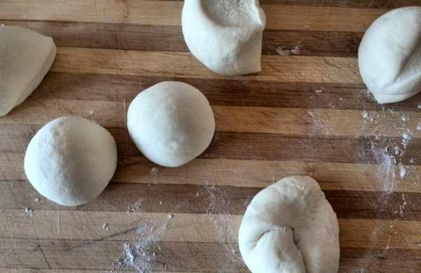 分好的饅頭面胚,把它們揉成饅頭。每一個饅頭揉十幾下就可以瞭。