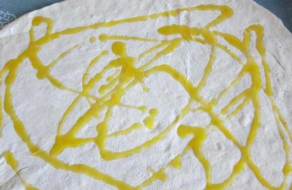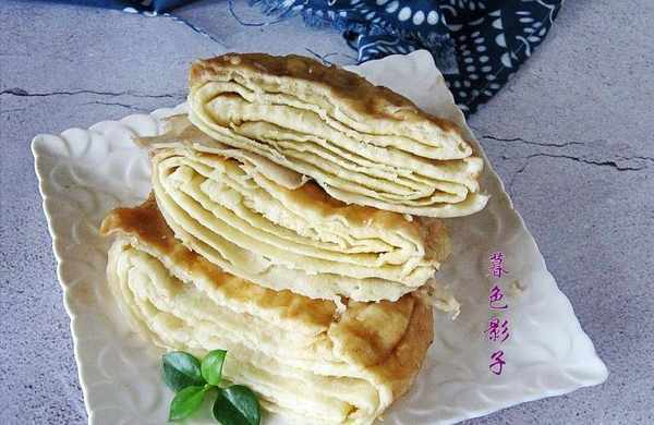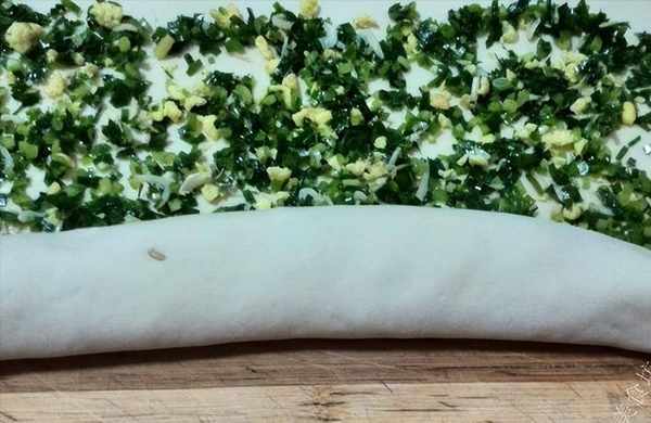 把面片上的油刷均勻瞭,面片卷成長筒,再次折疊,這樣做的餅層次多。做法如同圖片一樣。