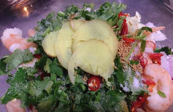 3、拌好的菜品最好放進冷藏中醃制1夜,這樣蝦肉會十分入味。