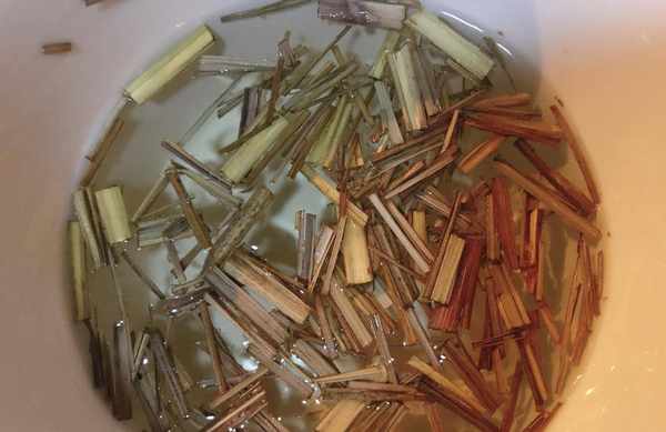 1、首先將制作菜品的食材以及調味料準備齊全,先把幹香茅草剪碎一些,然後放進容器中,倒入適量的冷水浸泡片刻。(市面上有新幹的香茅草也有新鮮的香茅草,大傢隨意購買即可,如果實在沒有就不要放。)