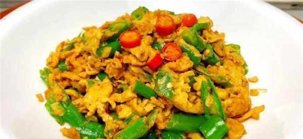 辣椒雞蛋是一道快手菜。整道菜最終呈現的是黃綠色,讓人食指大動。傢裡來客人的時候,這道菜是很不錯的素菜選擇,而且不耽誤時間。