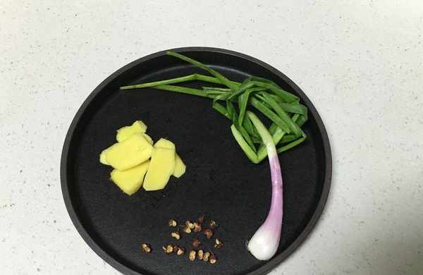(1)生薑切片,小蔥打結,取十多顆花椒備用