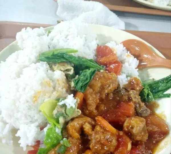 這樣的菜式,這豐盛的餐食,這滿滿的一碗,估計成年大漢都可以吃得飽飽的。難怪員工寧願排長隊吃食堂,也不吃外賣。