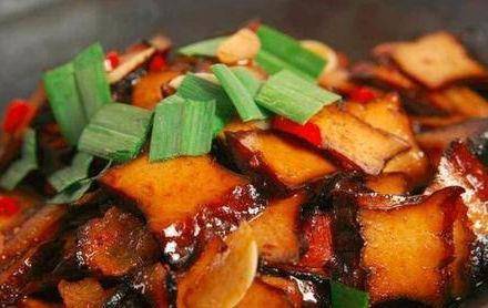 1.香幹洗凈,切成薄片,臘肉洗凈,切薄片。