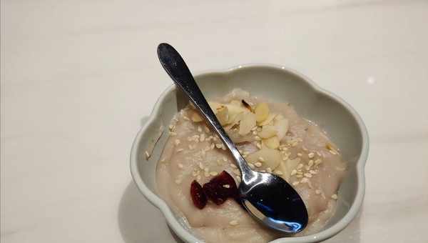 還有那個芋泥,純手工打造,端上來時還熱乎乎的,非常香滑,簡直是入口即化,不過裡面有豬油和糖,雖然隻有一小碗,但是芋泥也很濃鬱,吃起來很有飽腹感,基本上所有的菜都是高熱量的食物,吃一兩口就吃不下,感覺太厚重瞭。兩個小夥子胃口本來很大,但是也不同意這幾個菜,覺得沒吃幾口就飽瞭,那種油膩的感覺在嘴裡久久不能散去,實在太難受,恨不得趕緊灌一瓶白開水解膩。