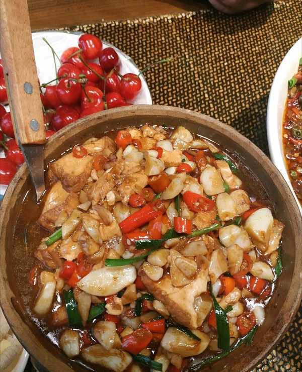 這傢館子是湖南湘菜系列的,多數都是辣味菜,這道燒魚肚好吃,但是太辣瞭,下酒很不錯,最後還是沒有光盤。