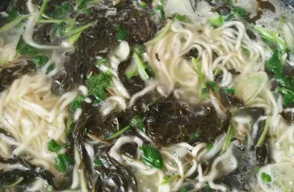 芝麻葉面條千萬不要煮弄,一定要掌握好或者,湯微微稠的時候最好吃。