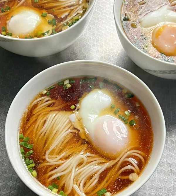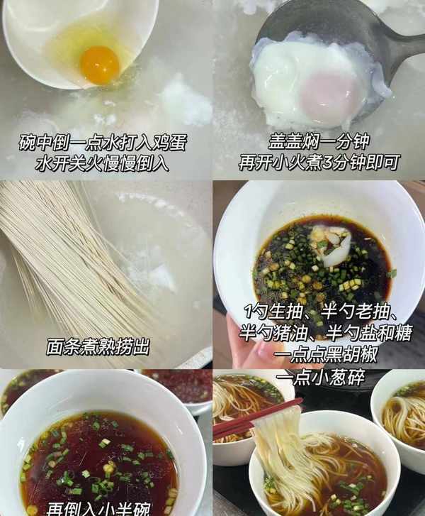 (3)面條煮熟撈出放入清湯碗中,碼上雞蛋