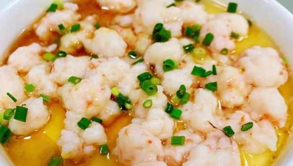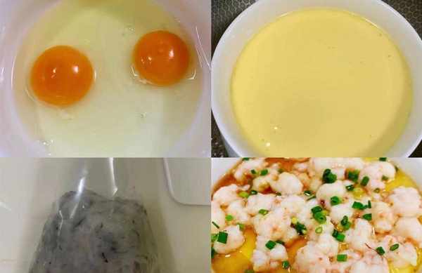 1.先將油和醬油倒入盤中,晃動一下讓它們均勻的佈滿盆底,然後把蝦仁處理幹凈並切碎後撒入盤中。