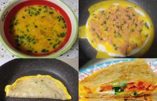 3.平底鍋加熱後放入鍋中,煎至雞蛋定型再翻面煎到兩面金黃。
