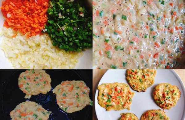 食材:雞蛋、胡蘿卜、面粉、大白菜、蔥花