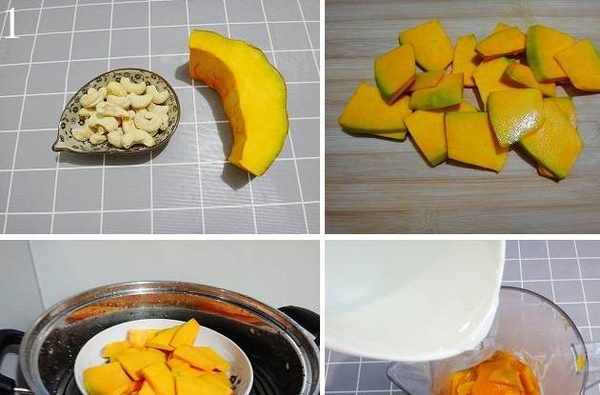 食材:熟南瓜200克,熱開水一杯,腰果40克