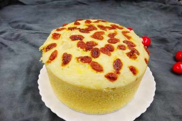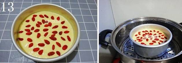 13、表面撒上枸杞,你可以撒葡萄幹、芝麻都可以。