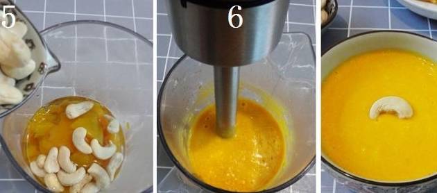腰果南瓜糊的做法也是特別簡單,隻需要準備一塊南瓜和一把腰果,可以在做晚飯的時候蒸一些南瓜放入冰箱裡留著,第二天早上隻需要把南瓜和腰果放入料理機裡,加入一杯熱水,啟動料理機30秒就能喝到香甜潤口的腰果南瓜飲糊。