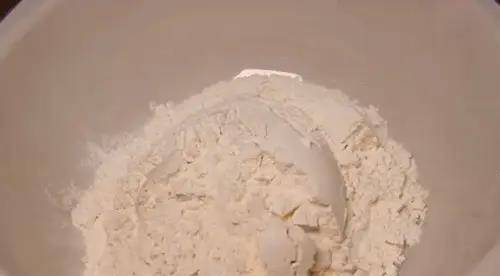 1、首先我們在碗中倒入500克普通面粉。(如果傢裡有高筋面粉的話,建議朋友們選擇高筋面粉)