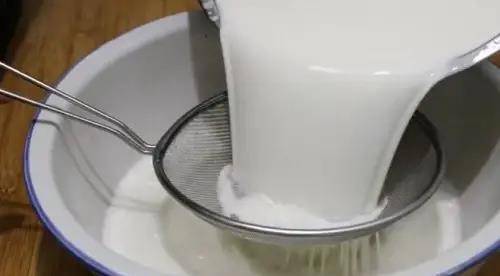 6、洗出來的面水再次過濾到大盆裡。