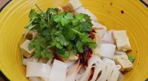 15、取3~5張涼皮切成條,涼皮切好後裝入碗中,再放入剛才做好的面筋塊,加入1勺蒜水、1勺芝麻醬、1勺生抽、1勺香醋、1勺自制辣椒油,傢裡有黃瓜的話再放點黃瓜絲,然後放上一些香菜段,用筷子攪拌均勻就可以開始享用美味瞭,爽滑筋道,香辣開胃,和外面買的氣質毫無差別。今天把詳細的做法分享給大傢,想吃涼皮又不會做的朋友也趕緊在傢試試吧。
