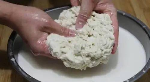 9、在洗好的面筋裡加入2克酵母粉揉開,然後放置20分鐘再放入鍋裡蒸,水燒開之後蒸15分鐘就可以瞭。(小提示:洗出來的面筋如果不是馬上蒸熟的話,一定要放入清水裡浸泡起來,以免被風吹幹瞭。)