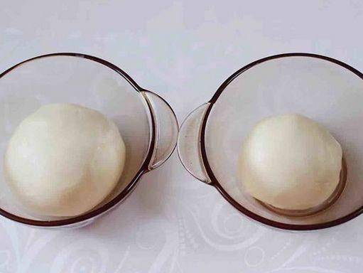 第三步,把油酥所能用到的食材,用手和勻,然後把油皮和油酥再次滾圓,放在容器中,上面蓋上一層保鮮膜