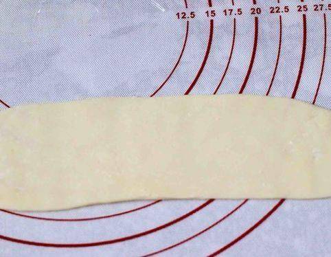 第八步,松弛好的面團,再次搟成橢圓狀,重復一遍第七步的做法,松弛15分鐘