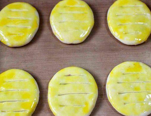 第十二步,烤箱提前預熱後,放上老婆餅,200度中層上下火烤25分鐘,中途打開蓋上錫紙,避免顏色會烤的太深