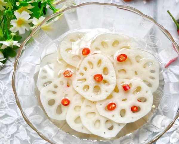 其做法首先需要將蓮藕切成薄片焯熟,然後將生薑去皮切末和白糖、醋、辣椒油等調制成料汁與蓮藕一起攪拌,最後在撒上蔥花點綴,薑汁藕片便做好瞭。