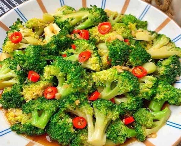 在做這道菜前,需要先將西蘭花洗凈焯熟,然後在鍋底加入適量的橄欖油和蒜片進行爆香,最後放入焯熟的西蘭花和鹽、味精等調味料進行快速翻炒。