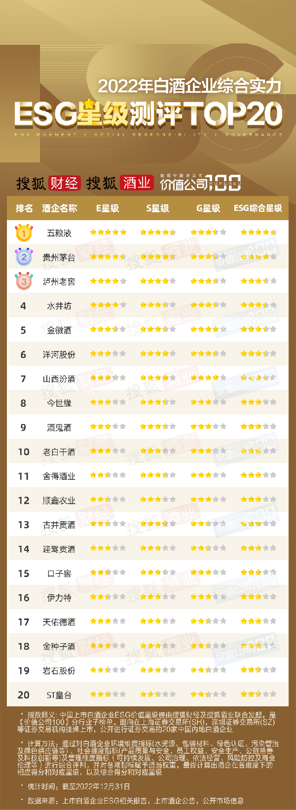 3月22日,搜狐財經及搜狐酒業聯合發佈“中國上市白酒企業ESG星級榜”。