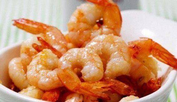 4、醃制好的基圍蝦放入四成熱的油鍋炸至紅色,撈出炸熟的基圍蝦,澆上紅酒檸檬醬汁即可!