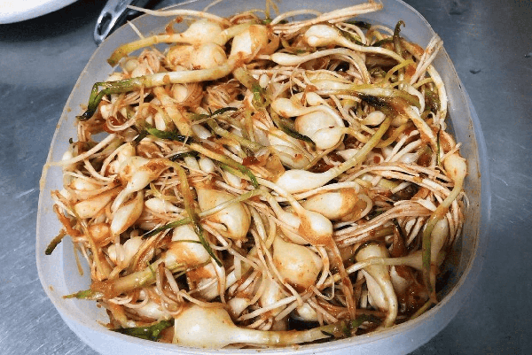 小根菜,又叫小根蒜、野蒜等,它長得跟蒜挺像,喜歡在田間和雜草生長在一起,吃起來像蔥,又像大蒜。記得小時候,外婆特別喜歡用它蘸醬吃,有時也用鹽和辣椒面簡單拌一下,特別地爽口、下飯,不愛吃飯的我,一下就來瞭食欲。