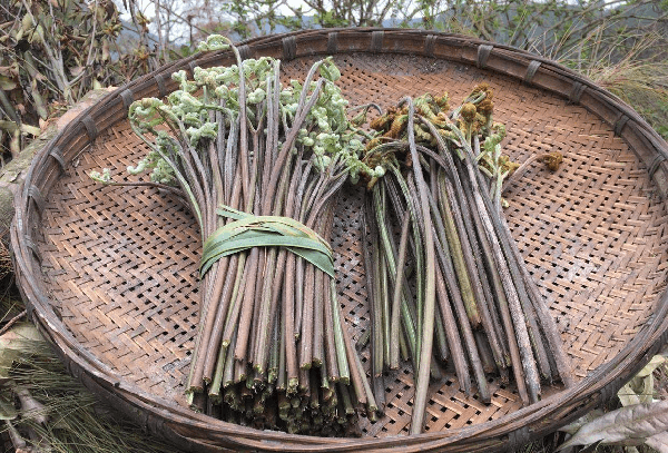 蕨菜又叫龍頭菜、“貓爪”,在民間素有“長壽菜”、“山野菜之王”和“雪果山珍”等美譽,含有豐富的蛋白質、脂肪、礦物質和多種維生素,過去曾是皇傢的貢品。蕨菜鮮美脆嫩,略帶有黏液,多年來一直受到人們的歡迎,尤其是老年人。