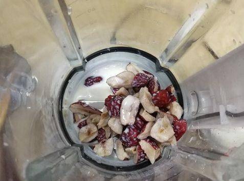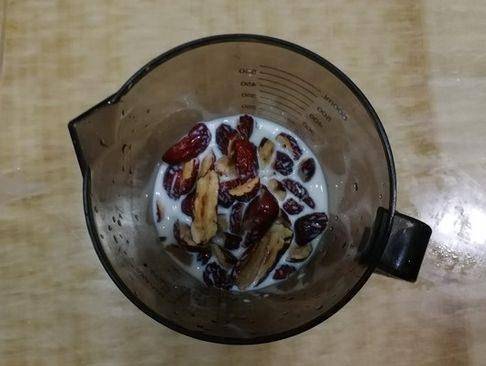 第二步,將泡好的紅棗和牛奶一並放入破壁機中,打成棗泥,取80克的棗泥備用