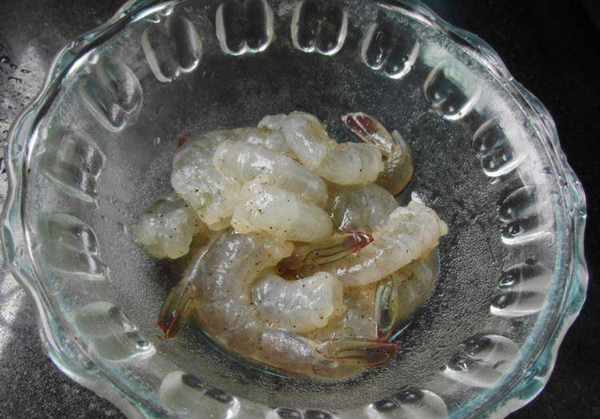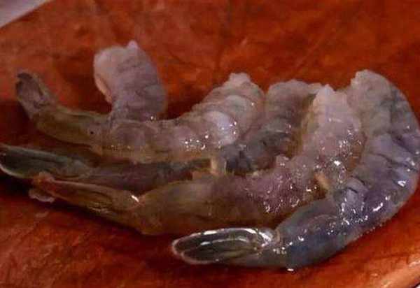 制作過程:第一步,首先要把買回來的鮮蝦去掉殼,去除蝦線,切開蝦背備用