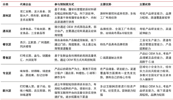 預制菜在疫情三年的高速發展,參與者數量快速增長,業內根據在產品、渠道、市場、品類等各方面的差異將預制菜分為瞭六大派:原料派、速凍派、餐飲派、零售派、專業派以及新興派。