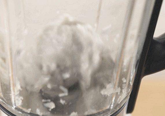 第二步,處理好的蝦仁放在破壁機中,選擇電動功能,大約20秒的時間,蝦仁便可以攪拌稱蝦糜瞭