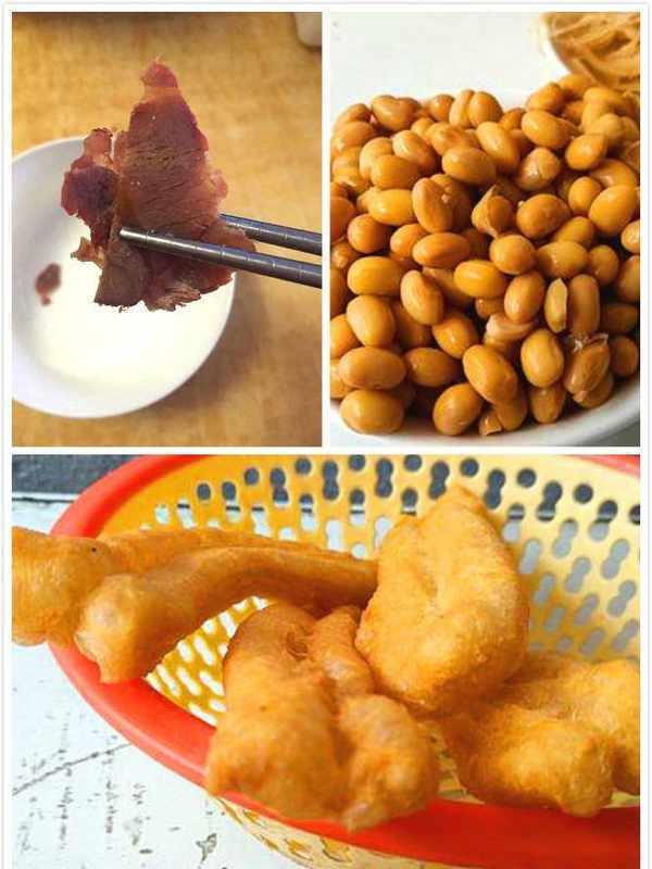 “資深”食客會把羊肉放在碗底,再撒上煮好的豆子,熱乎的粥倒入碗中,瞬間,羊肉的鮮香被激發出來。再把剛炸出來的熱油條,泡在粥中,油條酥脆,裹著肉香,粥香,豆子的香氣,這才是正經的曲阜糊粥的吃法。