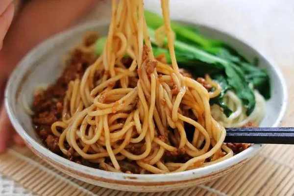 材料:面條500克、豬肉末300克、甜面醬1勺、豆瓣醬1勺、生薑1小塊切成絲、大蔥1根切成末、生抽1勺、老抽1勺、蠔油1勺、水淀粉1碗(約200毫升)