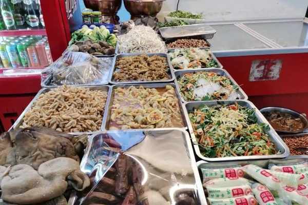 一進門,門口擺著許多好吃頭,說啥也得拌個涼菜,再來一份店裡的招牌美食。