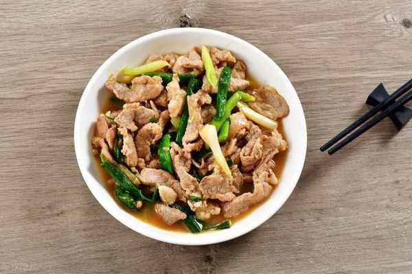 嫩蒜炒肉是一道傳統的川菜,嫩蒜含有豐富的營養成分,有抗癌、抗菌、降壓、降血糖等多種功效,搭配瘦肉,更是一道健康美食。