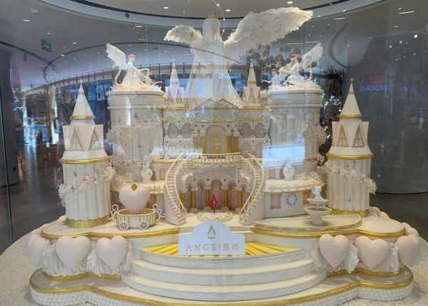 粉色旋轉大樓梯,連接上下層共計6000平米。這裡有一個巨大的圓形舞臺,舞臺上擺滿瞭各式各樣造型奇特的小蛋糕。樓梯邊依次陳列著他們傢48款設計款蛋糕,還用瞭6000平米的概念,估計相當於一個標準足球場。整個空間以白色為主色調,在柔和的燈光下顯得特別清新而又浪漫。空間內也有鏡面、花束裝置等等,這類“夢幻空間”設計,昂司蛋糕曾經向外界聲稱花費1個億。