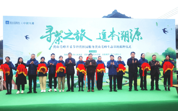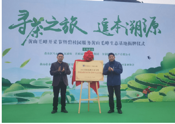 活動現場,碧桂園服務聯合中徽天都,在黃山毛峰成立生態基地並正式揭牌,代表著雙方聯動黃山地裡溪生態村,以實際行動助推鄉村振興。