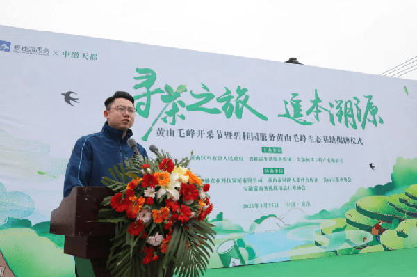 “碧桂園服務集團始終致力於為社會創造幸福生活,本次‘尋茶之旅,追本溯源’的活動是聯動黃山區烏石鎮、協同中徽天都等品牌,以黃山市地裡溪生態基地為載體,形成茶旅生態遊的經濟鏈,將黃山的地理名片通過碧桂園服務推廣到全國,助力當地的旅遊發展。這次的黃山毛峰頭采,碧桂園服務實現瞭從茶園到茶杯,全鏈條匠心溯源。帶領業主沉浸式體驗旅遊觀光+春茶采摘,追溯毛峰的原產地,過濾中間環節,通過碧桂園鳳凰會、抖音等線上平臺銷售,直接將綠色有機產品送到業主手中,解決深山裡農副產品的滯銷問題,公益助農,踐行社會責任感,引領共享美好生活。未來,碧桂園服務將繼續根植市場探索‘物業服務+生活服務’,引領碧桂園的業主回歸自然,沉浸式體驗徽派文化,探尋有機茶園原產地,真正讓黃山毛峰成為一個產業生態,富裕一方百姓,助力美好生活。”碧桂園生活服務集團副總裁王修濤說。