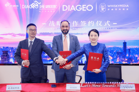 近日,貴州美酒鏈科技有限公司、Diageo、蘇威百科酒業集團戰略合作發佈會在美酒鏈科技上海陸傢嘴總部順利收官。(以下簡稱:美酒鏈科技、蘇威百科)